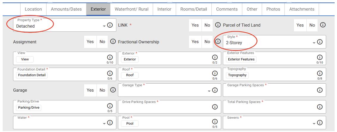 Example: For a property that is registered with MPAC as a single-family dwelling but also has a secondary dwelling unit, is required to be listed as a single-family dwelling. You can accommodate for the SDU by adding the details to the listing Remarks field and selecting Aux Dwelling in the Other Structures field. To do this, you will select the Property type field to reflect ‘Detached’, the Property Style field to reflect ‘2 Storey’, then you would select the Other Structures field and then select ‘Aux Dwelling’. (see below)